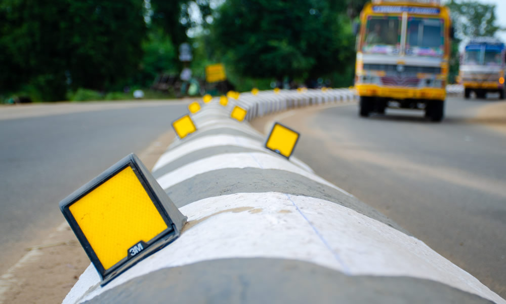 Featuring high-visibility yellow/black colors and retro-reflective surfaces, they improve nighttime safety. These flexible or rigid markers bend upon impact, reducing vehicle damage, and are easy to install, with costs ranging from ₹85 to over ₹400 per piece.
